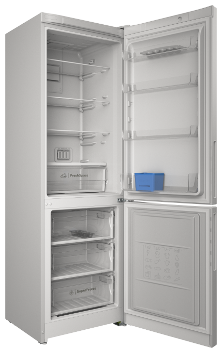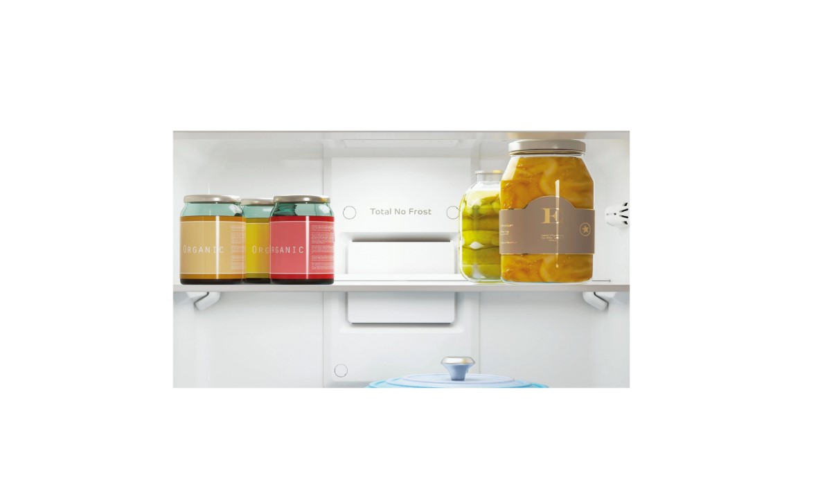 Высокий морозильник на 78 л оснащен 3 прозрачными выдвижными контейнерами и небольшой емкостью для кубиков льда. Технология Total No Frost предотвращает появление наледи в обеих камерах, исключая необходимость ручной разморозки. Холодильный отсек вмещает 220 л и дополняется яркой LED-подсветкой, равномерно освещающей все внутреннее пространство. Дверь дополнена высокой полкой для хранения бутылок, 3 лотками для специй и соусов, вкладышем для яиц.