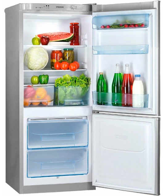Корпус холодильника выполнен на регулируемых по высоте ножках. В верхнем холодильном отделении расположены 3 полки из ударопрочного стекла с возможностью перемещения по высоте, 2 больших пластиковых сосуда для овощей и фруктов. На двери установлены 3 полки-барьера из прозрачного пластика. В морозильной камере размещаются 2 объемные пластиковые корзины. Оба отделения закрываются дверцами с правым навешиванием и интегрированными в торцы ручками. Содержимое камер охлаждается компрессорным агрегатом. Поворотный регулятор температуры и индикаторы работы расположены на верхней торцевой стороне внутри холодильного отделения.