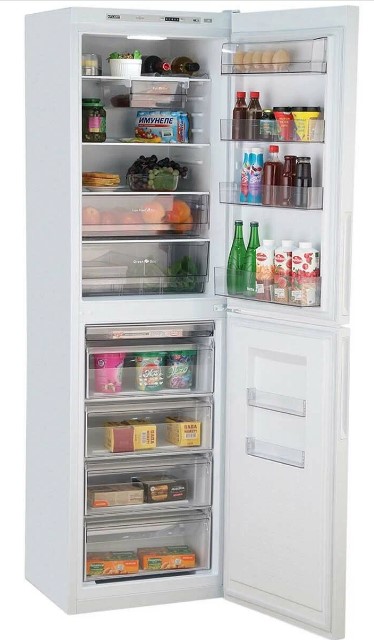 в комплекте: подставка для яиц, форма для льда, маслёнка, подставка для бутылок; две дверные полки в морозильном отделении, 4 в холодильном отделении; в холодильном отделении основные полки регулируются по высоте; полочка для заморозки
