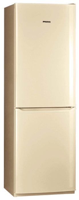 Холодильник установлен на регулируемые по высоте ножки. Дверцы нижнего морозильного и верхнего холодильного отделений имеют правые петли и интегрированные в торцы ручки. В холодильном отделении предусмотрено 2 больших пластиковых бокса для овощей или фруктов, 4 ударопрочные стеклянные полки с возможностью перестановки по высоте. На дверце расположены 4 прозрачные пластиковые полки-барьеры. В морозильнике установлены 3 объемные пластиковые корзины для заморозки. В нижней части холодильника находится компрессорный агрегат, охлаждающий оба отделения. Температура холодильного отделения регулируется поворотным регулятором на верхнем торце, там же установлены световые индикаторы работы.