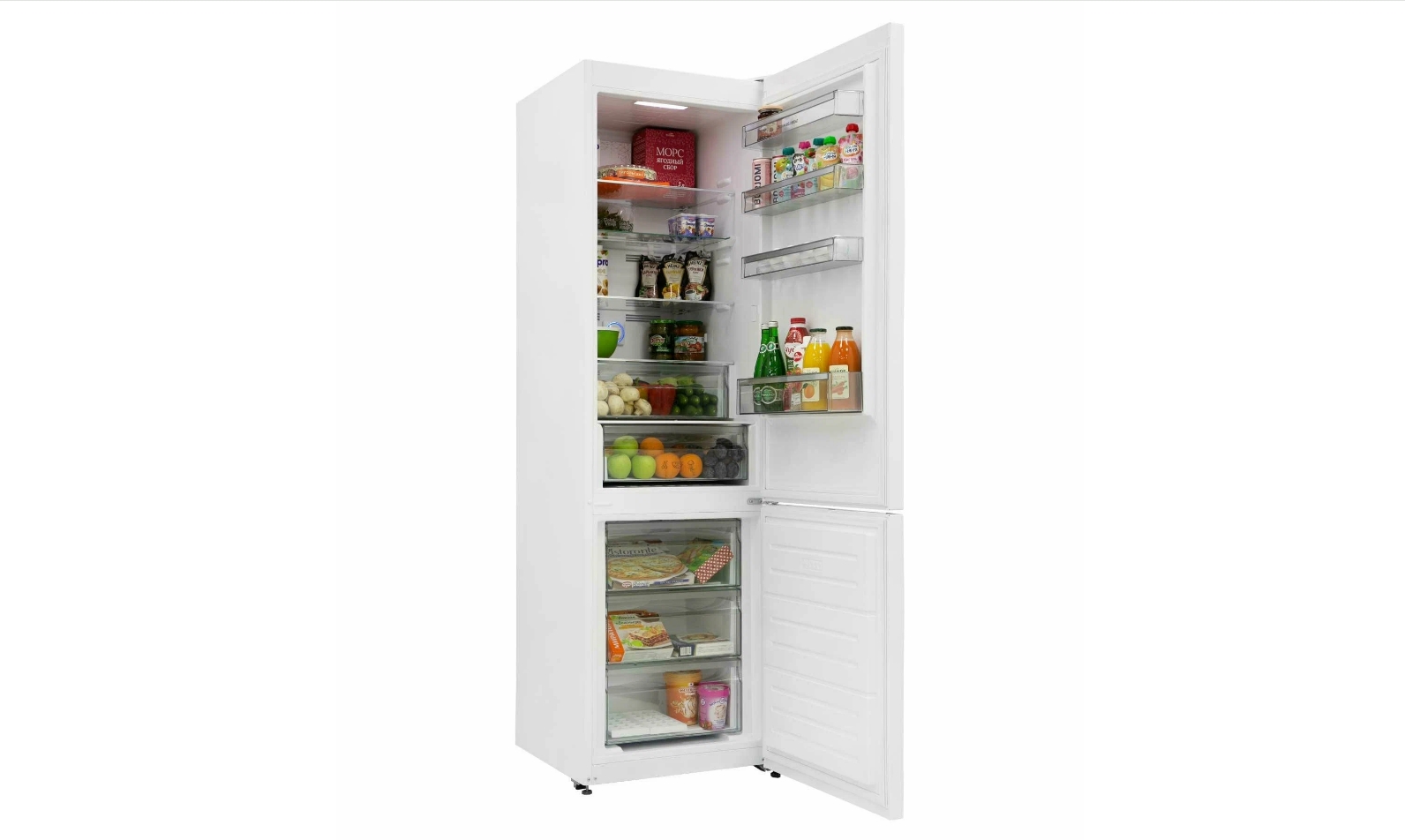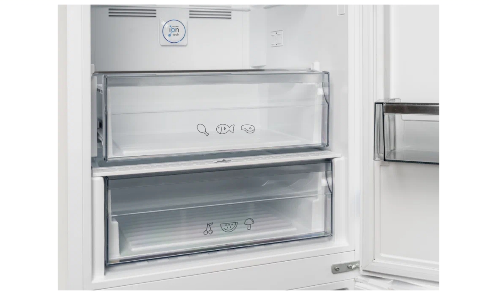 Перенавешиваемые двери создают дополнительные возможности выбора размещения холодильника. В морозильной камере имеются 3 вместительных ящика, где раздельно можно хранить ягоды, мясные продукты, рыбу. В комплекте – лоток для льда, форма для яиц.