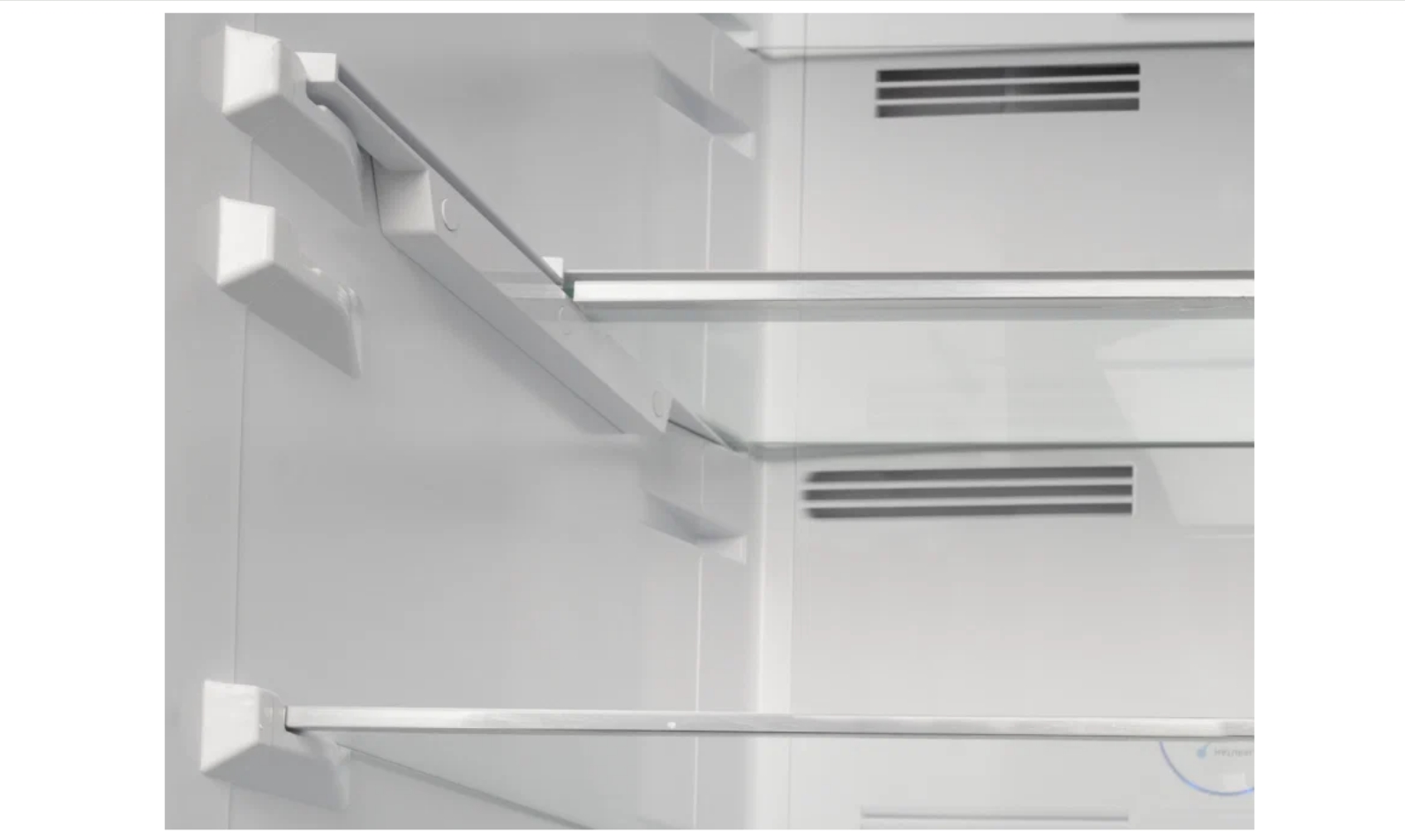 Холодильная камера наполнена четырьмя прочными полками из закалённого стекла и 1 ящик для овощей, на дверце холодильника расположены четыре полочки со стильной хромированной окантовкой. Также предусмотрена и зона свежести для хранения мясной или молочной продукции.