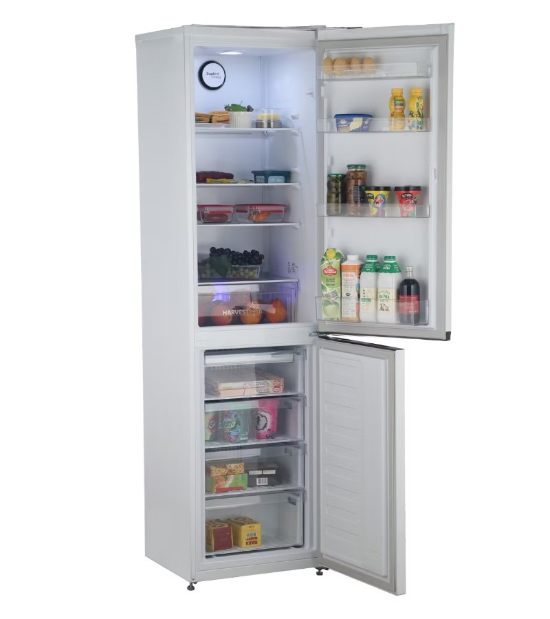 Холодильник оснащен ЖК-дисплеем, на котором отображается информация о работе устройства. Дополнительные функции включают суперзаморозку и суперохлаждение, что позволяет быстро охладить или заморозить продукты.