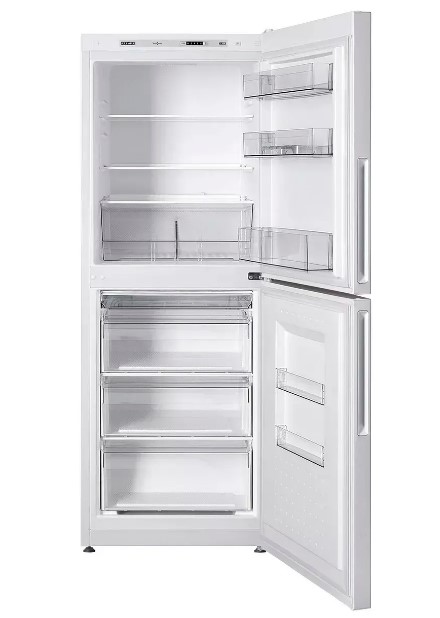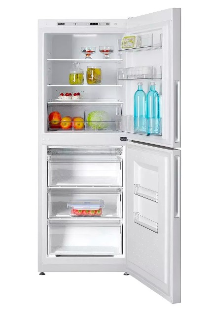 Холодильное отделение объемом 148 литров оснащено тремя полками из закаленного стекла, положение которых можно менять для размещения посуды разной высоты. На дверце предусмотрены три барьер-полки и ограничитель для бутылок. Свежесть овощей и фруктов помогает дольше сохранять специальная корзина GREEN BOX с разделителем. Яркое LED освещение равномерно освещает все внутреннее пространство. Вместительный холодильник с морозилкой на 119 литров способен замораживать до 5,5 кг продуктов в сутки. Функция быстрого замораживания сохраняет структуру и полезные свойства продуктов, а три отдельных ящика, две емкости SLIM SPACE и поддон для ягод обеспечивают порядок при хранении. В случае отключения электроэнергии камера поддерживает температуру -18 С в течение 20 часов.
