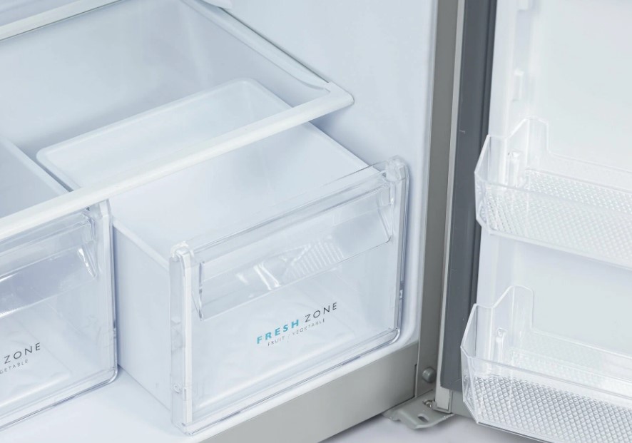 Модель выполнена в цвете «металлик», что придаёт ей современный и аккуратный вид. Внутри холодильного отделения предусмотрены три полки и два ящика для овощей и фруктов, а также светодиодная подсветка, которая равномерно освещает всё пространство.
