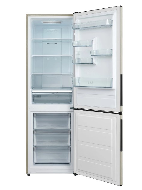 Дизайн холодильника выполнен в бежевом цвете, что позволяет ему гармонично вписаться в любой интерьер кухни.