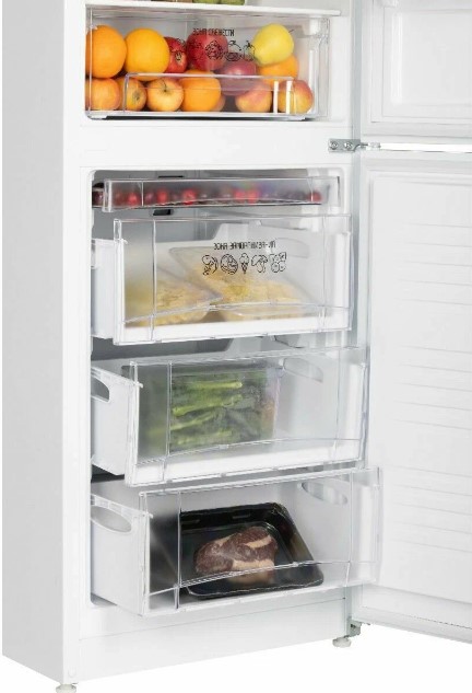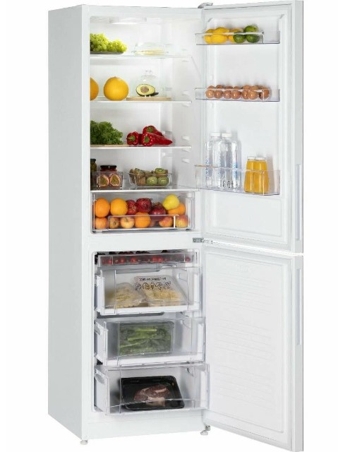 Общий объём 310 литров и нижнее расположение морозильной камеры делают модель удобной для повседневного использования. Холодильная камера поддерживает температуру от 0 °C до +8 °C. Морозильная камера объёмом 105 литров с системой No Frost замораживает до 3,5 кг продуктов в сутки, полностью исключая образование наледи, а лоток для заморозки ягод помогает сохранить сезонный урожай.