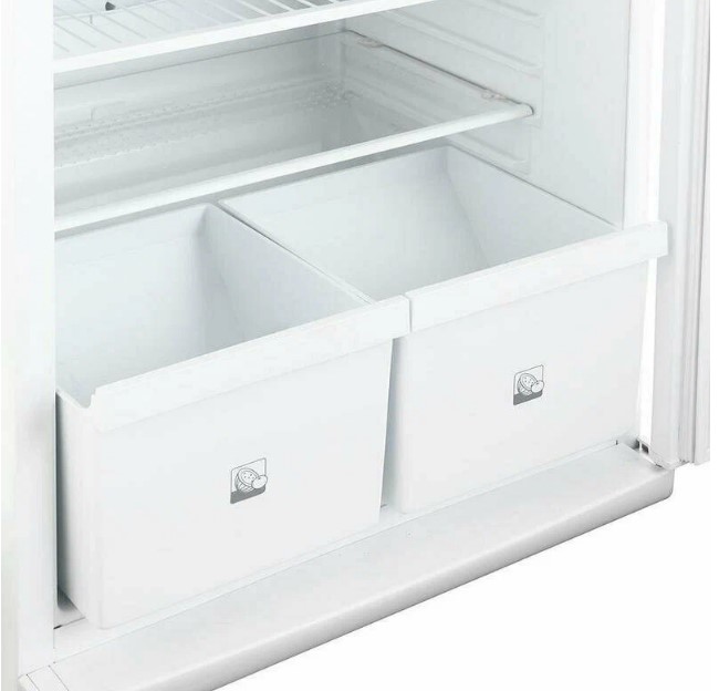 В холодильнике предусмотрено 4 металлические решетки для хранения продуктов и 2 ящика для овощей и фруктов. Материал полок - металл и пластик, что обеспечивает надежность и долговечность использования.