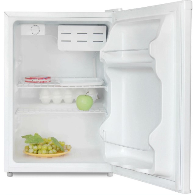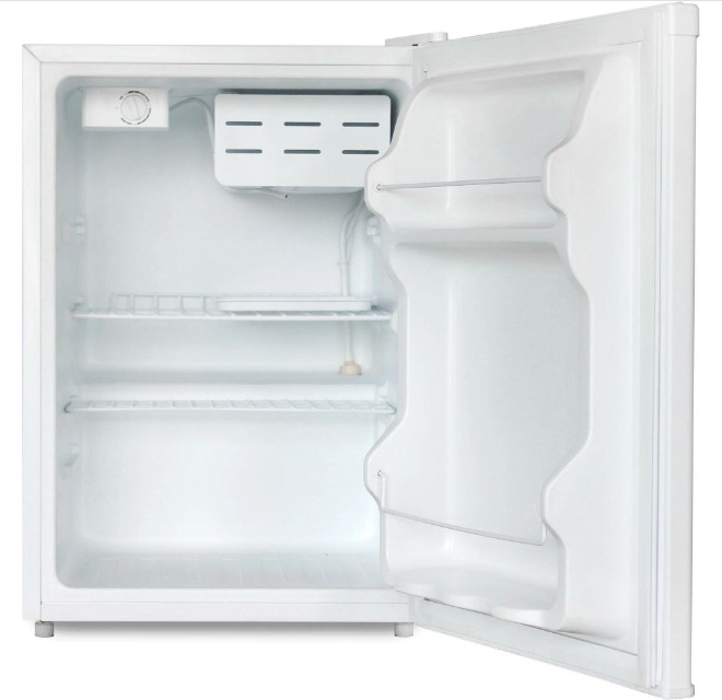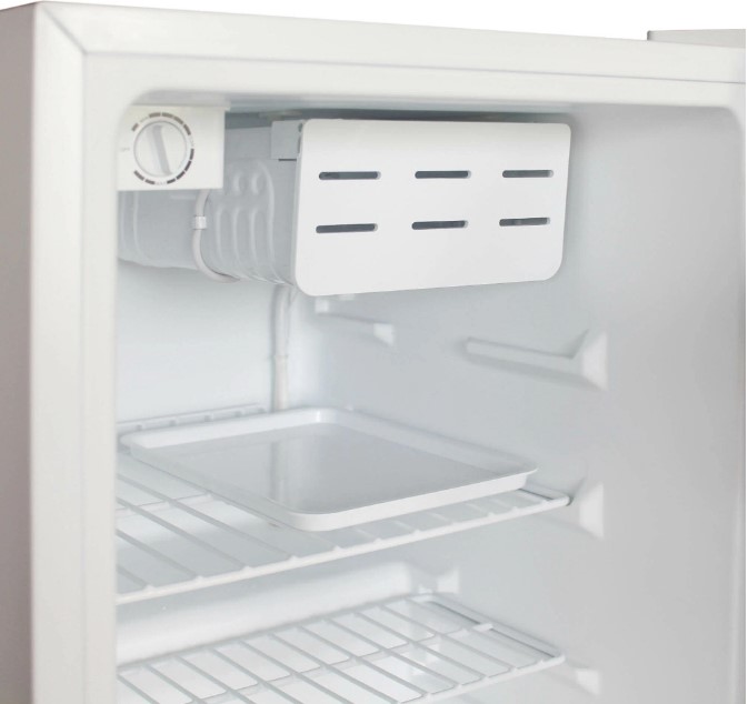 Внутри холодильника Бирюса 70 находится небольшая морозильная камера, в которой можно будет хранить нуждающиеся в заморозке продукты (мороженое, полуфабрикаты, мясо). Работает холодильник достаточно тихо (всего 42 дБ), поэтому он не будет мешать отдыхать при установке в гостиничном номере. Для удобного размещения продуктов внутри холодильника имеются две полки из металла и дополнительные полки на его дверце. Дверцу можно перевесить, чтобы было легко и комфортно открывать холодильник.