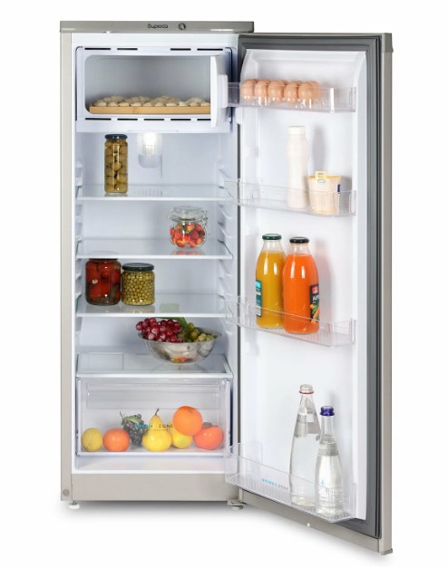 Особенностью холодильника является его морозильная камера. Она расположена сверху, что позволяет использовать пространство под ней для хранения высоких продуктов.