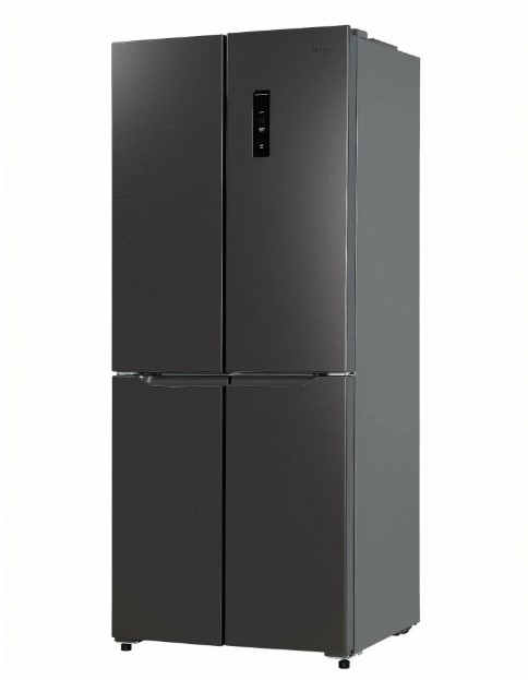 Холодильник оснащен четырьмя дверями и тремя камерами, что позволяет удобно разместить продукты и обеспечивает быстрый доступ к ним. В холодильном отделении имеется 3 полки из стекла и пластика, а в морозильном - 6 ящиков и полок.