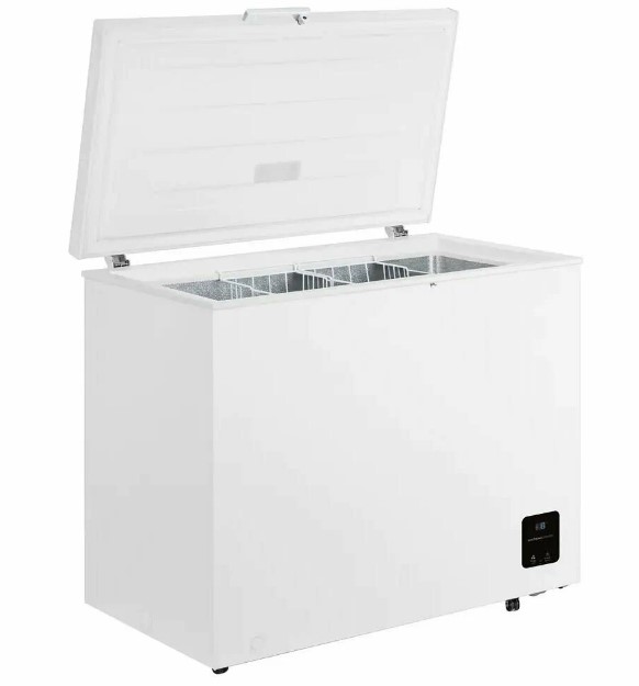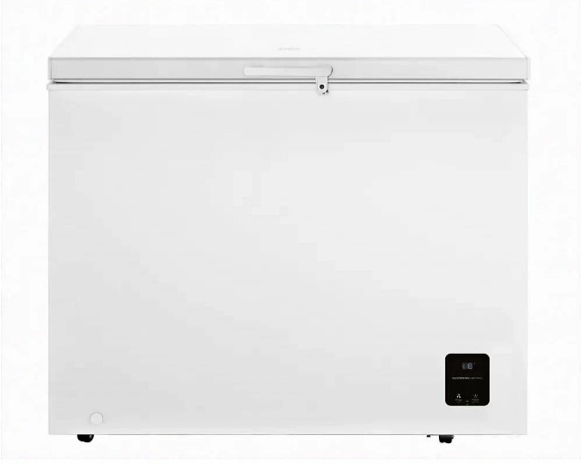 Управление устройством осуществляется электронно, а информация отображается на цифровом дисплее. Размораживание происходит в ручном режиме, но есть и функция быстрого замораживания, которая позволяет сохранить все полезные свойства продуктов. Мощность замораживания составляет 15 кг за 24 часа. Внутреннее освещение выполнено на светодиодах и расположено на потолке, что обеспечивает хорошую видимость содержимого.