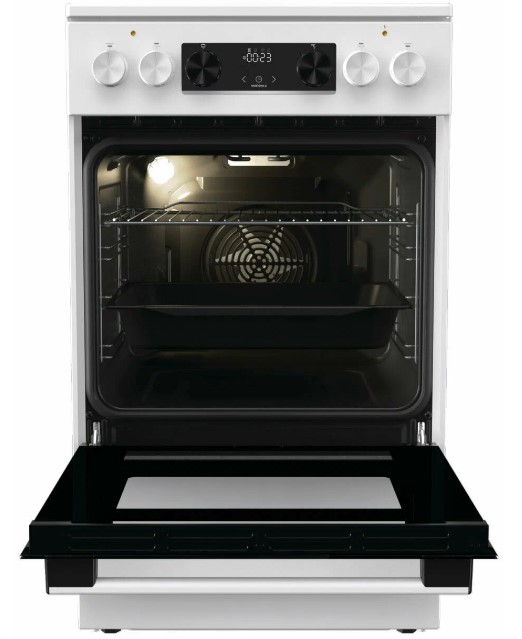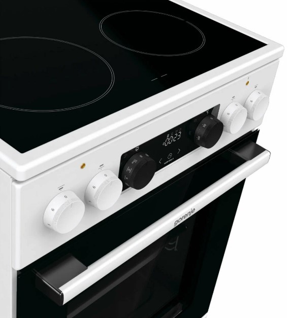 Электрическая плита Gorenje GEC5C61WG имеет корпус белого цвета, а дверцу духовки и варочную панель черного цвета. Такой дизайн смотрится лаконично и подойдет к вашей кухне. При помощи индикаторов остаточного тепла вы сможете определить состояние конфорки после завершения приготовления блюда, насколько сильно нагрета та или иная зона. Эргономичные переключатели и электронный программатор с аналоговым дисплеем помогают настроить режимы работы и таймер. 11 программ приготовления позволяют приготовить разные блюда. Продуманная технология равномерной циркуляции горячего воздуха MultiAir дает возможность готовить на нескольких уровнях сразу.