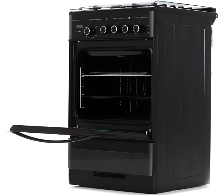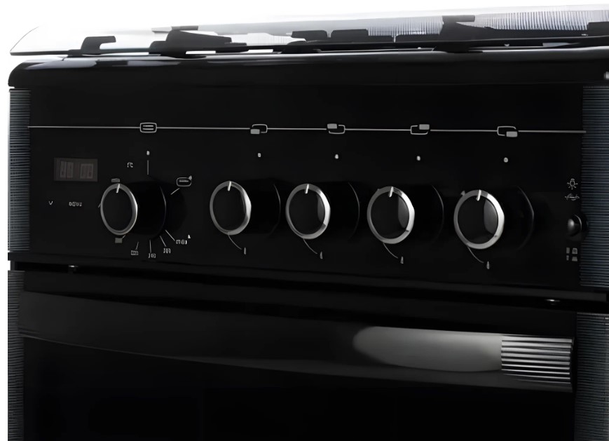 Варочная панель плиты имеет прочные и практичные чугунные решетки для размещения посуды. Вам не придется использовать спички или зажигалку: модель имеет электроподжиг конфорок, который активируется поворотом ручки. Безопасности использования варочной панели способствует наличие газ-контроля. Газ-контроль есть и в 52-литровой духовке. В оснащение духовки также включены гриль и вертел. Удобству контроля за процессом приготовления способствует подсветка.