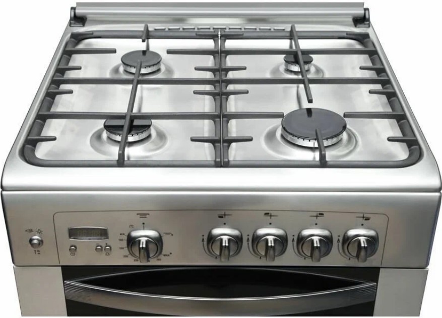Газовая плита с выдвижным ящиком и стеклянной защитной крышкой, ширина 60 см. Современный дизайн, фасад и варочная поверхность из нержавеющей стали. На панели управления установлен электронный таймер со звуковым сигналом об окончании заданного времени. Плита оснащена автоматическим электроподжигом и газ-контролем горелок рабочего стола и жарочного шкафа. Рабочая поверхность с 4 конфорками, две стандартные, маленькая экономичная и большого диаметра, с мощным нагревом. Духовой шкаф оборудован термостатическим нагревом и грилем, внутреннее освещение-двухточечное. Для удобства использования, в духовке устанавливается вертел (поставляется с плитой), а направляющие для противней исполнены съемными.