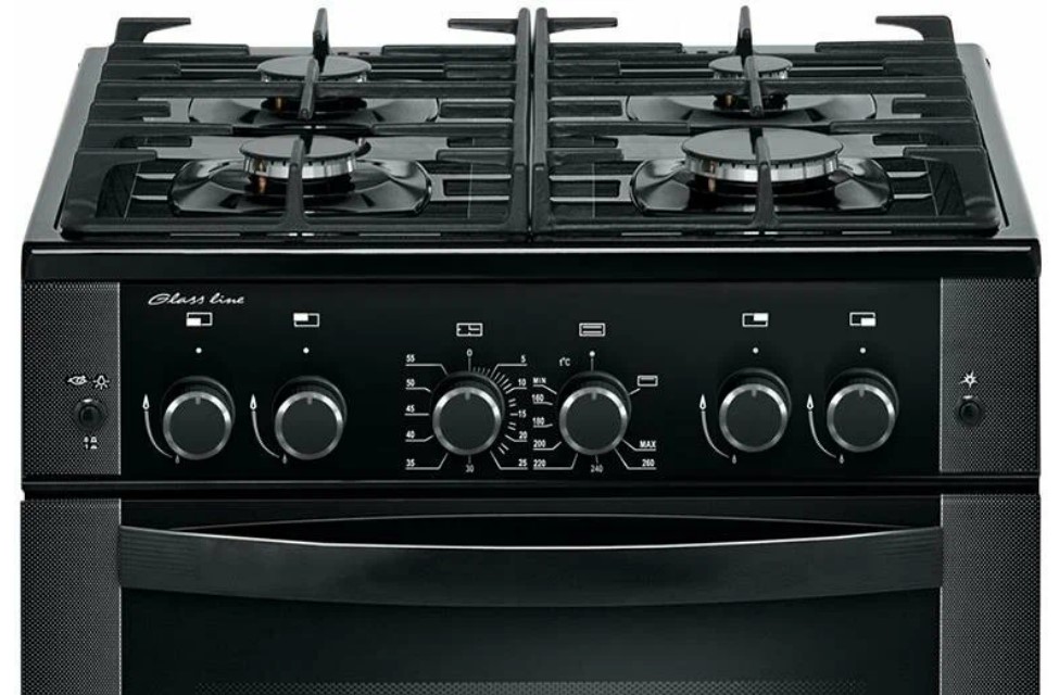 Плита 4 конфорки оснащена мощными горелками: передняя правая на 3,03,1 кВт быстро доводит воду до кипения, а задняя правая на 1,0 кВт подходит для томления. Плита с духовкой объёмом 52 л позволяет запекать большие порции, с газ-контролем для безопасности и терморегулятором для точного контроля температуры. Гриль-горелка на 1,9 кВт и вертел с электроприводом обеспечивают равномерную прожарку мяса, а двойная подсветка и проволочные направляющие упрощают наблюдение и доставание форм. Механический таймер помогает не пропустить момент, а выдвижной ящик под плитой хранит посуду компактно.