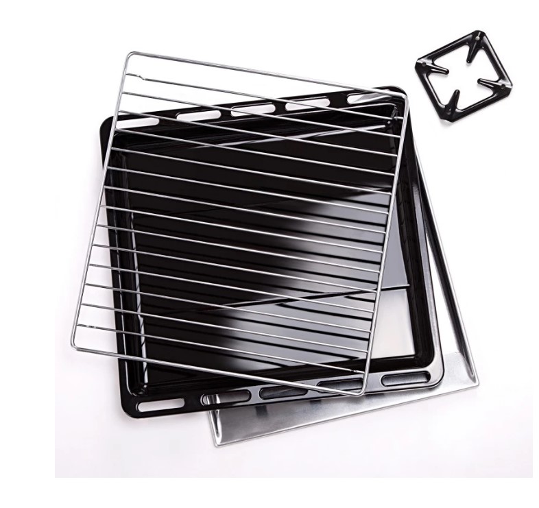 термоуказатель; штампованные направляющие духовки; регулировочные ножки; стальные решетки горелок стола; металлическая крышка; класс электробезопасности: II; масса нетто: 38.5 кг