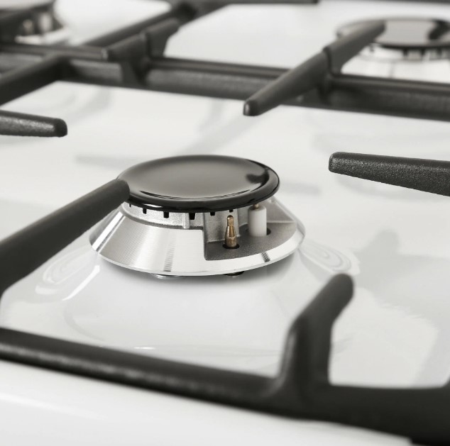 Все горелки варочной поверхности оснащены системой газ-контроля, которая автоматически перекрывает подачу газа при затухании пламени, обеспечивая безопасность. Розжиг осуществляется с помощью кнопки на панели управления, что делает запуск простым и надёжным.