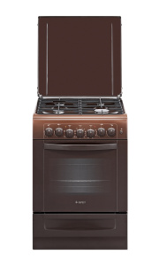 Варочная поверхность - эмалированная, 4 газовые конфорки с газ-контролем и электроподжигом (включение нажатием кнопки). Горелки укрыты от повреждения чугунными решетками, они составные.