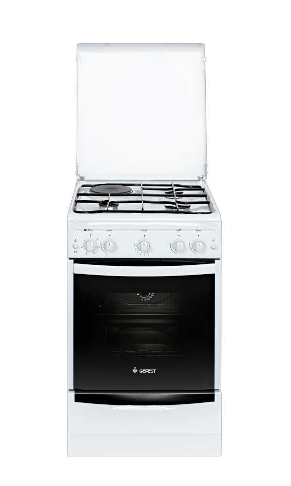Комбинированная плита GEFEST ПГЭ 5110-01 — это практичное решение для повседневной готовки, объединяющее газовые и электрическую конфорки. Модель оснащена четырьмя зонами нагрева — три газовые и одна электрическая, что обеспечивает удобство в любой ситуации. Варочная поверхность выполнена из прочной эмали, а металлическая крышка защищает её от загрязнений. Решётки из стали обеспечивают устойчивость посуды и лёгкость в уходе. Газовый духовой шкаф оснащён системой газ-контроля, которая автоматически перекрывает подачу газа при затухании пламени. Для удобства предусмотрен электророзжиг духовки и конфорок, активируемый кнопкой на панели — всё зажигается быстро и безопасно. Термоуказатель отображает температуру внутри духовки, а встроенная подсветка позволяет следить за процессом приготовления. Съёмные проволочные направляющие надёжно удерживают противни, а гидролизная очистка в сочетании с покрытием SMART CERAMIC значительно упрощает уход за внутренней камерой. Модель выполнена в белом цвете с классическим дизайном, дополнена выдвижным ящиком для хранения принадлежностей и регулируемыми ножками для устойчивости на любой, даже на неровной поверхности.