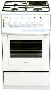 Духовка электрическая. Она равномерно готовит блюда, эффективнее поддерживается заданная температура. Два нагревательных элемента сверху и снизу позволяют хорошо пропекать самые различные блюда. Нагреватели можно включать по отдельности или вместе, когда требуется нагрев со всех сторон. В плите предусмотрен режим подачи малого газа.