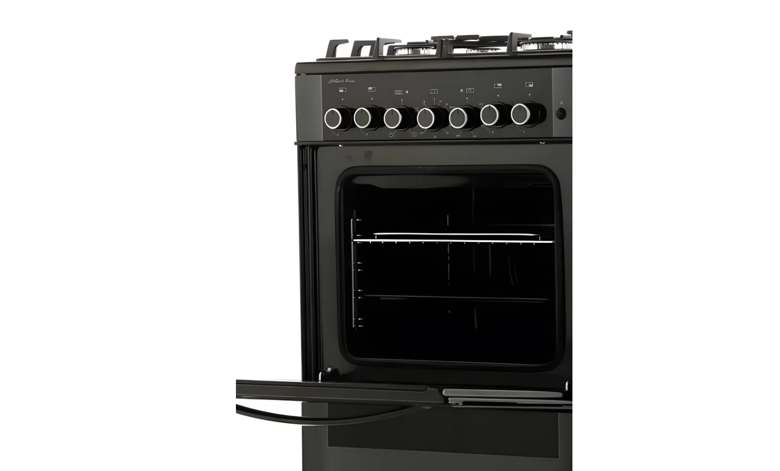 Плита оборудована механическим управлением с поворотными переключателями, что делает ее удобной и простой в использовании. Безопасность обеспечивается блокировкой панели управления и подсветкой духовки.