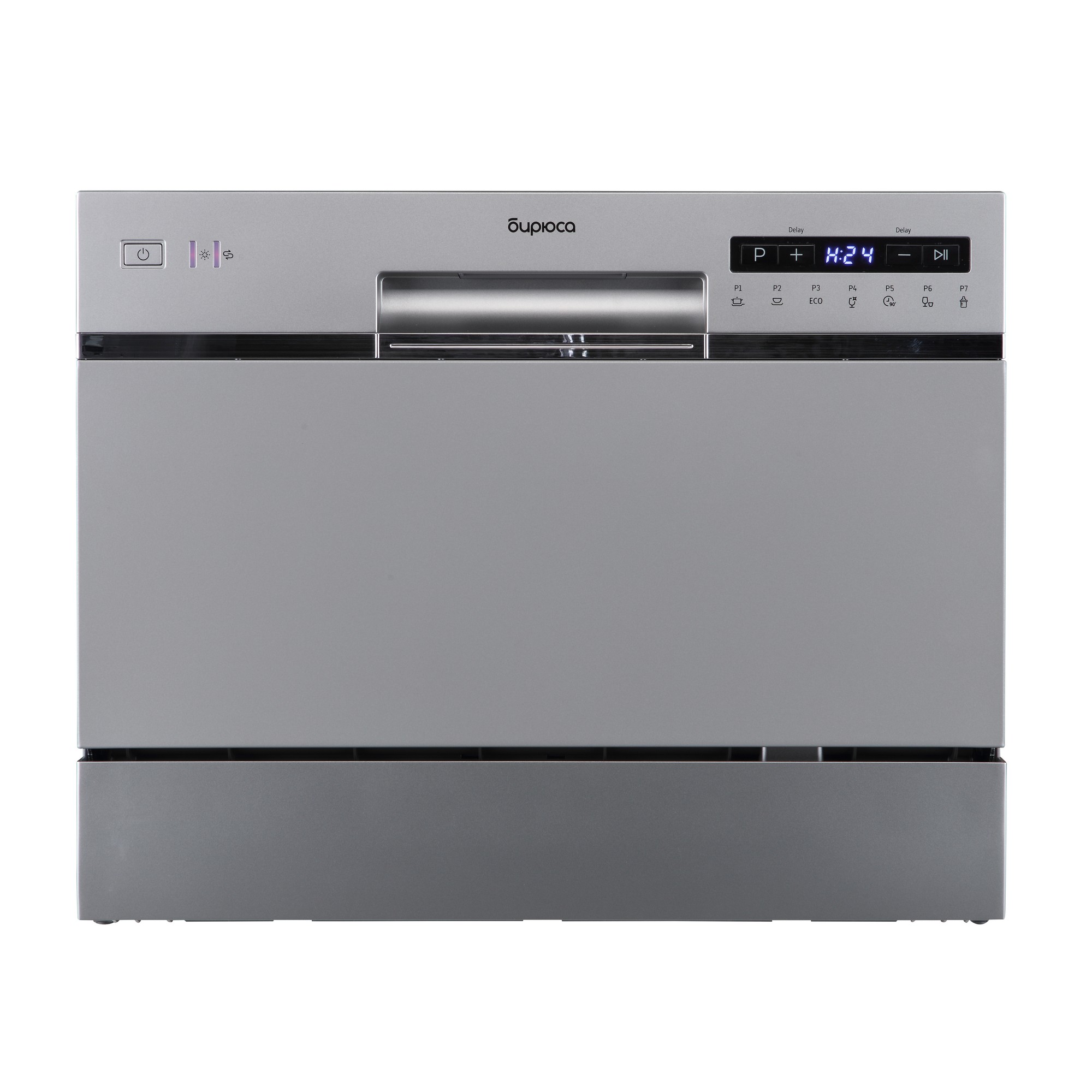 Несмотря на один разбрызгиватель, посудомойка Бирюса эффективно отмывает содержимое благодаря продуманной геометрии камеры и направлению струй. Простой интерфейс с дисплеем выводит текущее состояние цикла, ошибки и напоминания о необходимости пополнить соль или ополаскиватель.