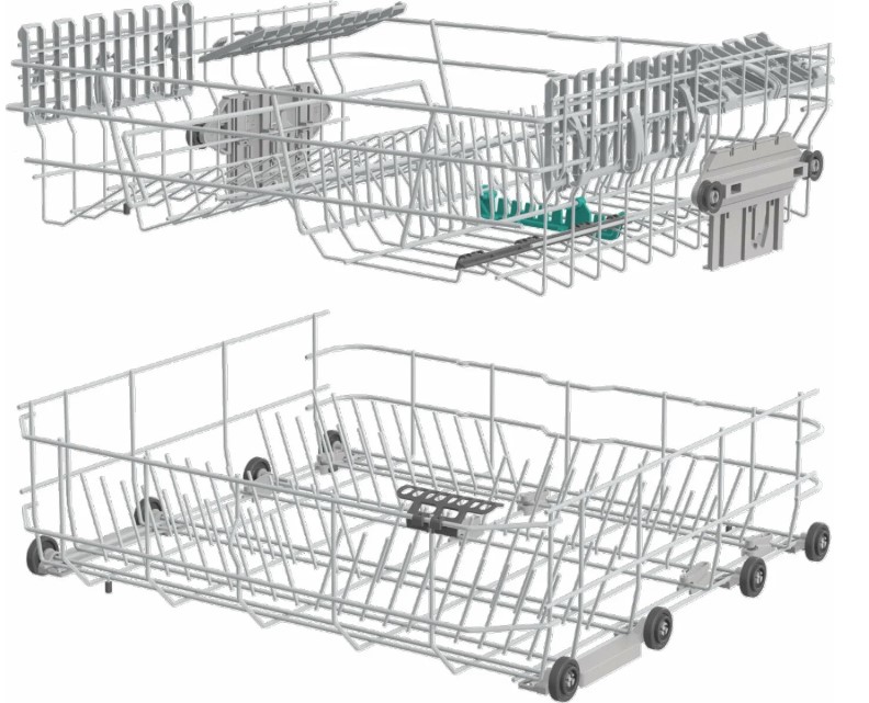 Верхняя корзина легко переставляется между двумя уровнями, что позволяет разместить в машине даже самые большие кастрюли и тарелки. Держатели для тарелок в нижней корзине складываются, обеспечивая больше места для большой посуды.