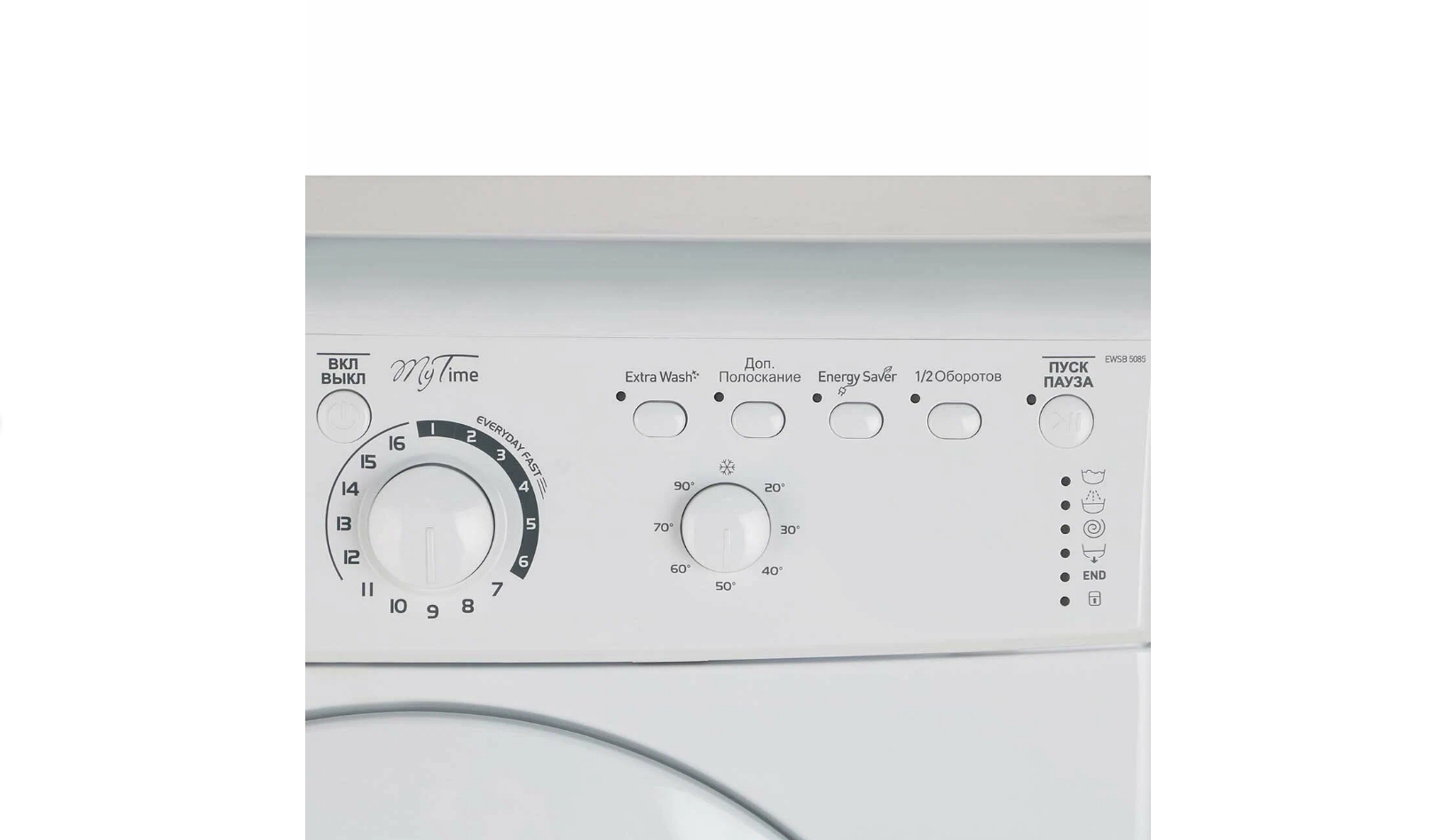 У стиральной машины INDESIT EWSB 5085 CIS белого цвета есть уникальные особенности. Она умеет отстирывать вещи с сильной загрязненностью. Нужно лишь включить интенсивный режим. Еще одно преимущество - программа Energy Saver. Активировав функцию можно освежить загрязненные ткани при экономном расходе ресурсов.
