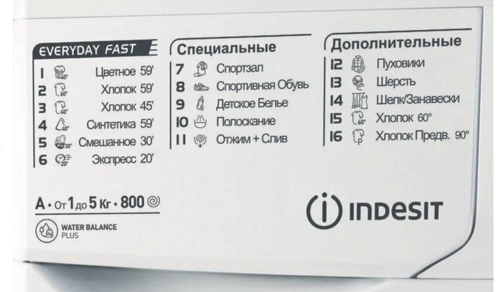 стирка деликатных тканей, экономичная стирка, предотвращение сминания, стирка джинсов, стирка спортивной одежды, быстрая стирка, предварительная стирка, программа удаления пятен