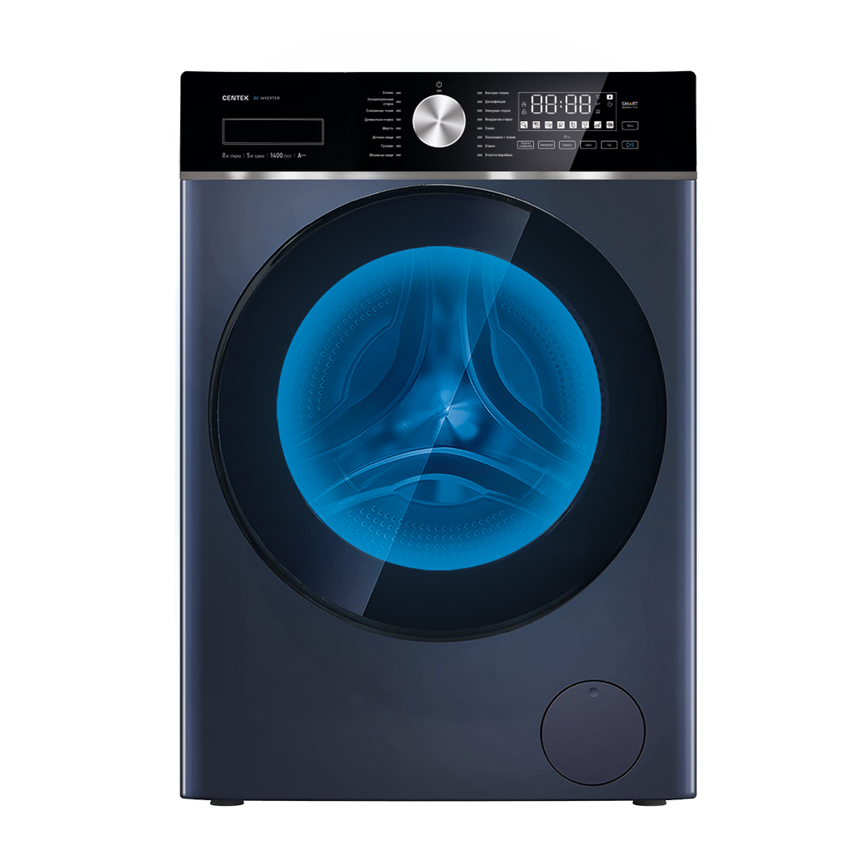 Стирально-сушильная машина Centek CT-1956 оснащена сенсорным дисплеем и поворотным регулятором. Подсветка барабана повышает комфорт загрузки и извлечения вещей. Функция дозагрузки делает возможной добавление забытой вещи после включения программы. Система баланса определяет неравномерность распределения белья в барабане. Инверторный двигатель обеспечивает тихую стабильную работу и энергоэффективность класса А+++.