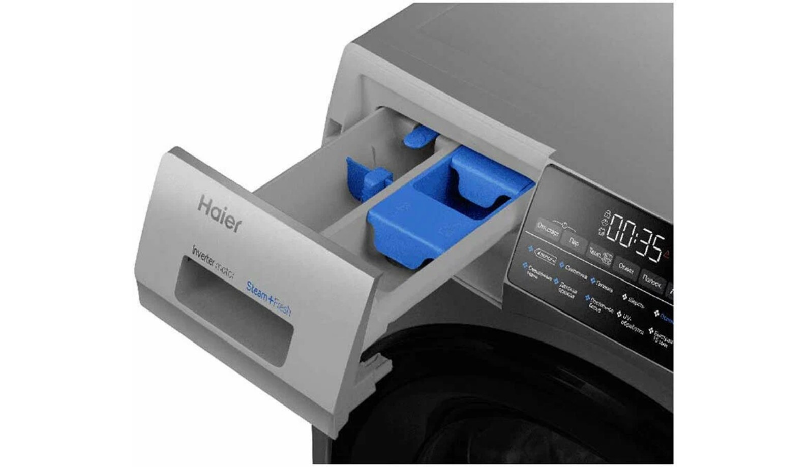 Модель Haier HW90-BP14959S дополнена программами самодиагностики, UV- и обработки вещей паром. ВВы можете самостоятельно выбирать температуру нагрева воды и скорость отжима, а также включать блокировку панели. Система автовзвешивания экономит потребление электричества и воды, ориентируясь на вес загруженного белья.