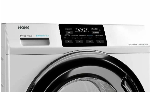 Отжим на скорости 1200 об/мин позволит доставать из барабана Haier HW70-BP12919 почти сухое белье. Прибор поддерживает 10 программ, поэтому подходит для стирки разных тканей. Также можно активировать дополнительное полоскание, стирку паром для дезинфекции белья, устранения запахов и разглаживания складок. Кюветы для порошка и манжеты люка обработаны антибактериальным материалом, что препятствует развитию грибка и плесени.