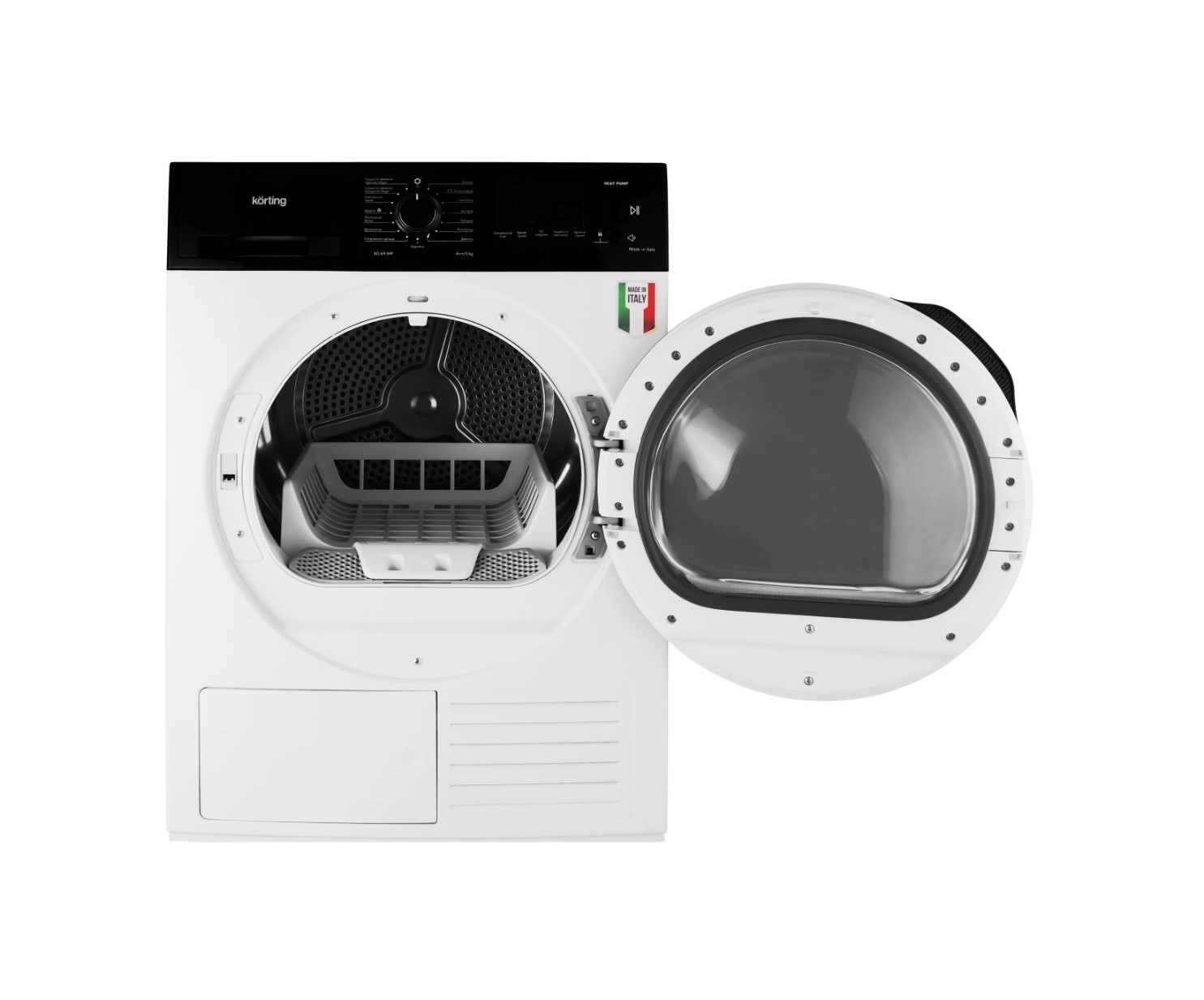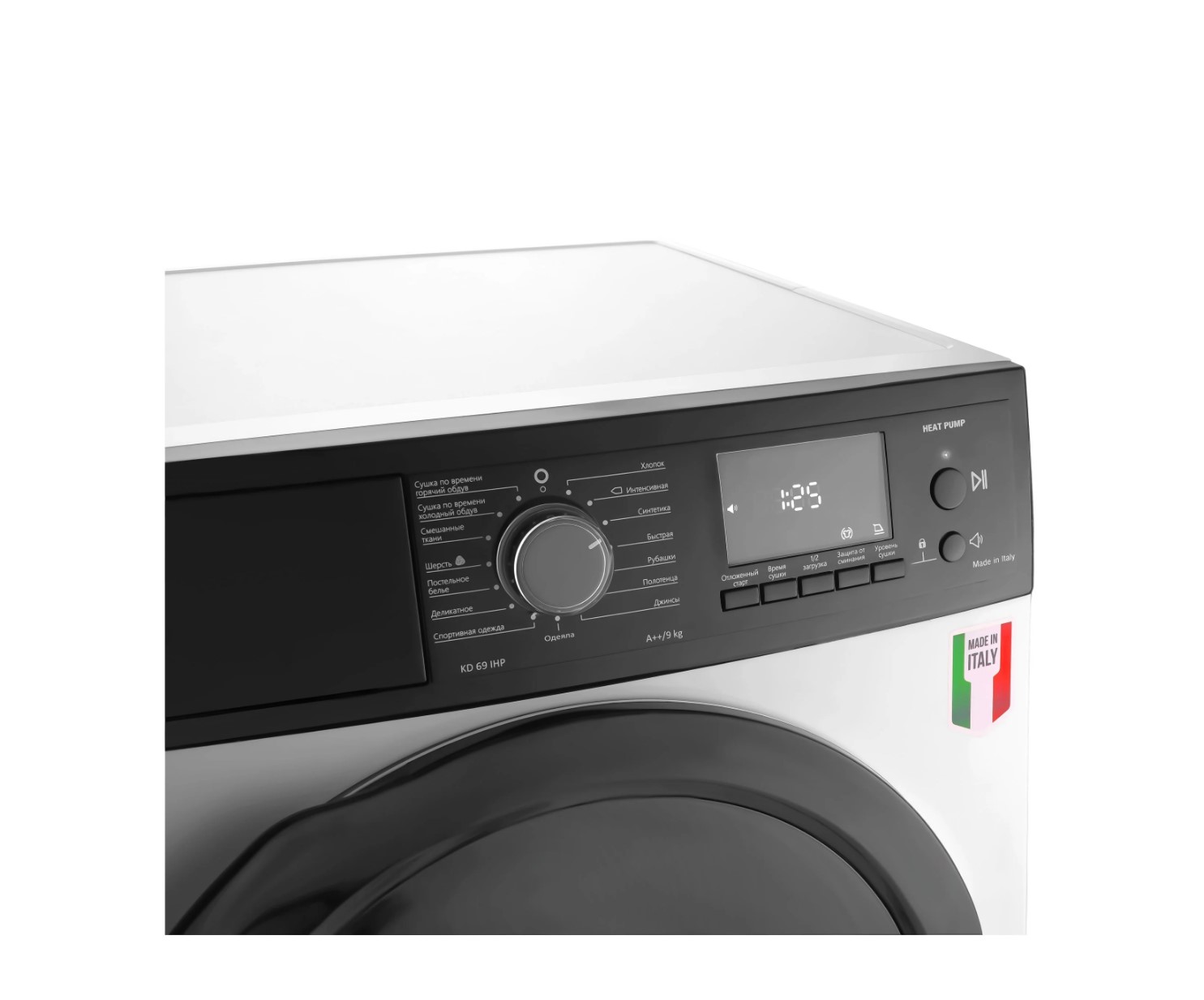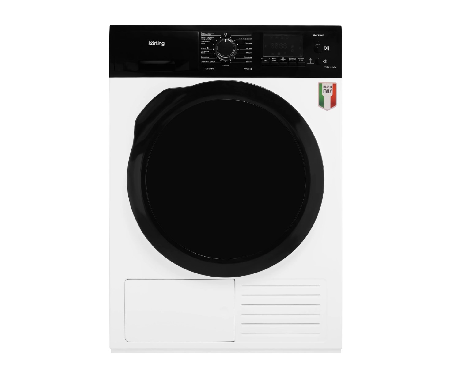 Тип сушки: с тепловым насосом (Heat Pump), что сильно снижает энергопотребление и бережнее относится к тканям.