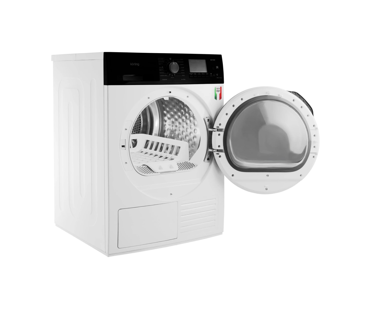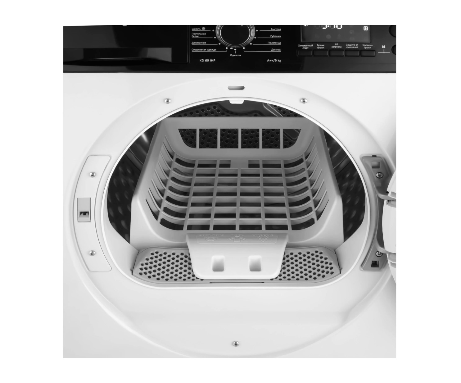 Доступны режимы деликатной сушки, антисмятие, половинная загрузка, реверсивное вращение барабана для равномерного высушивания.