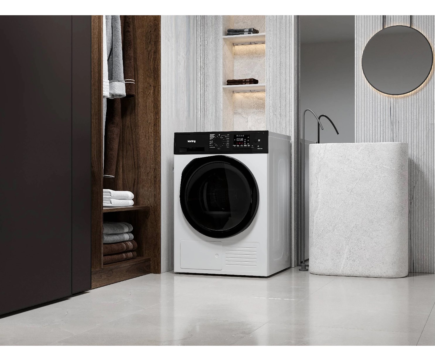 Оптимальна для семьи 3–5 человек, где активно используют стиральную машину и нужна экономичная, но вместительная сушилка, гармонирующая с другой техникой Korting по дизайну и классу.