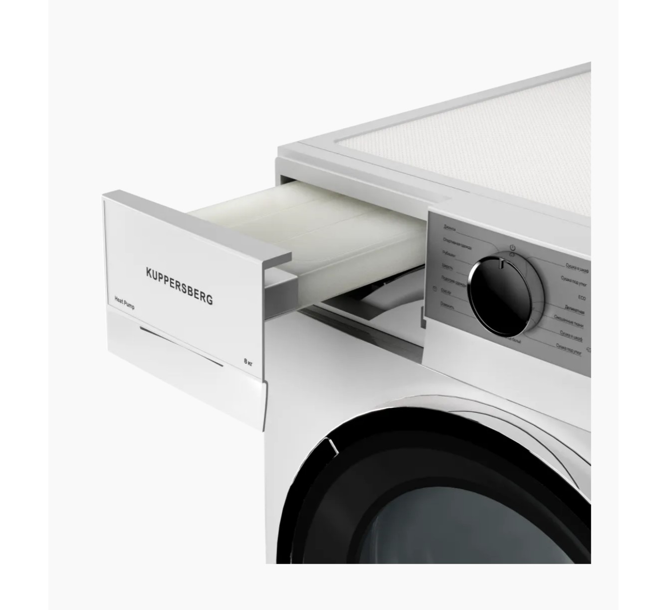 Технология теплового насоса (Heat Pump): обеспечивает экономное энергопотребление (класс A++), бережно сохраняя структуру тканей при сушке.