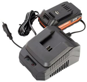 Питание от Li-Ion аккумулятора: 2 А·ч, 21 В