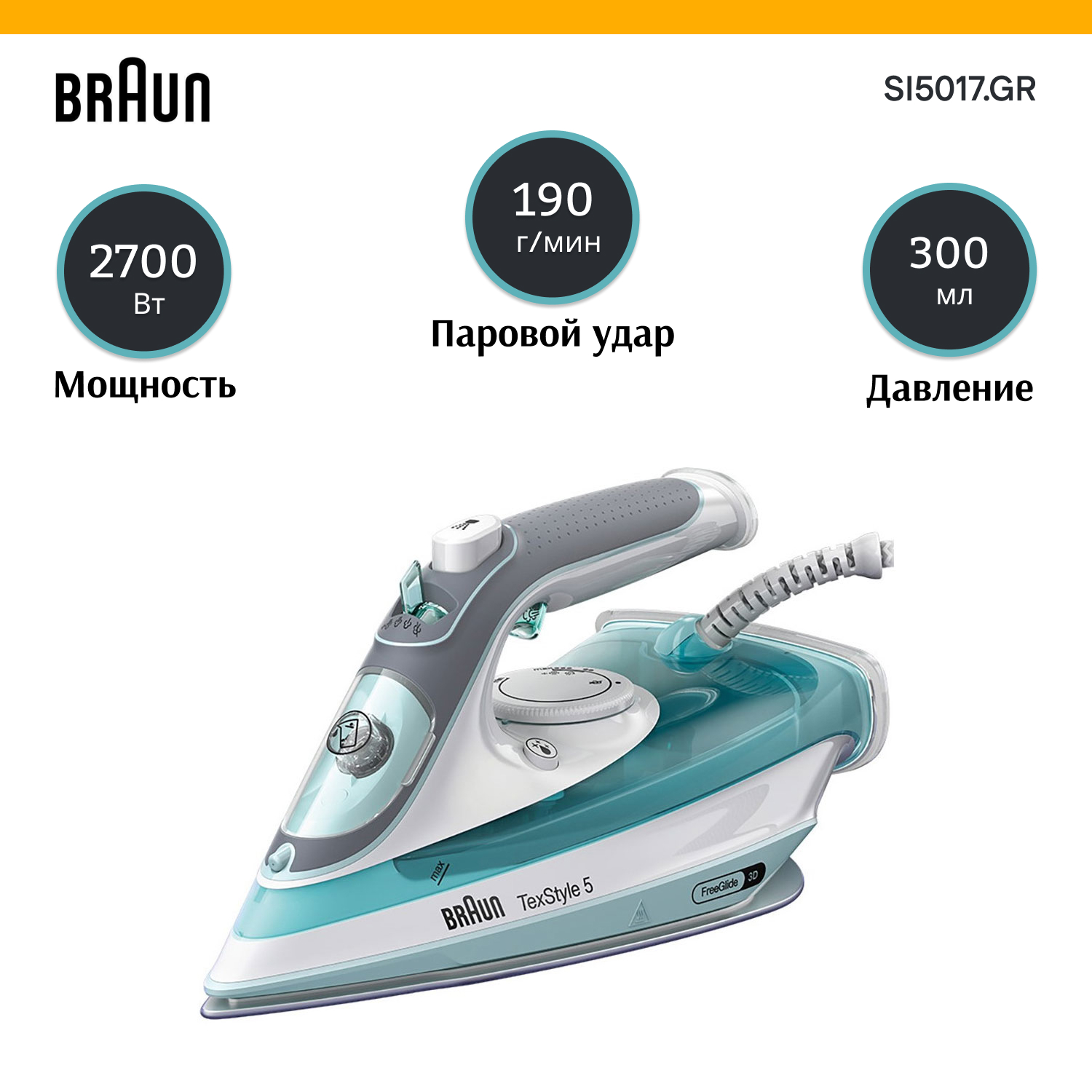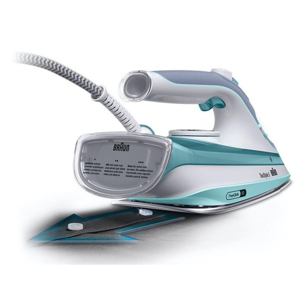 Прибор оснащён идеально гладкой подошвой FreeGlide 3D Eloxal Plus. Её поверхность не только максимально бережно воздействует и на шёлк, и на струящийся атлас, но и легко освобождается от скопившихся ворсинок и прочих загрязнений.