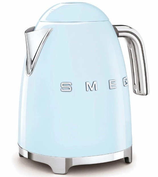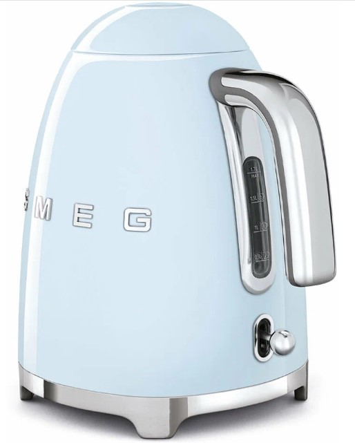 Чайник выполнен в пастельно-голубом цвете, напоминающем стиль 50-х годов. Объем чайника составляет 1,7 литра, что позволяет приготовить до трех чашек чая или кофе за раз. Номинальная мощность 2400 Вт обеспечивает быстрое кипячение воды.
