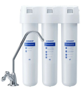5 лет, фильтр АКВАФОР КРИСТАЛЛ А устанавливается под мойкой, находящейся в помещении