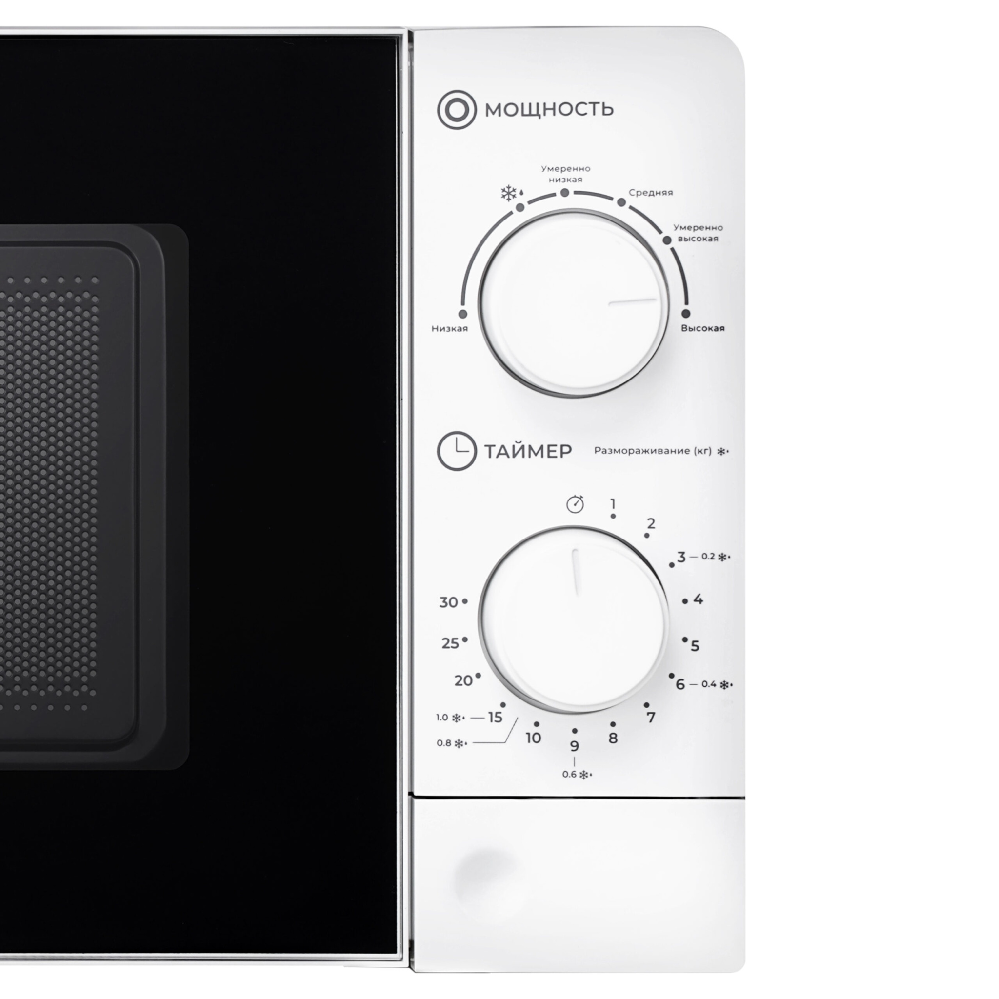 Микроволновая печь оснащена интуитивно понятным механическим управлением и комфортным таймером до 30 минут.