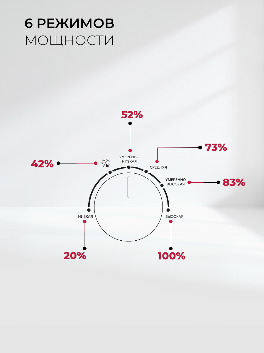 Благодаря мощности микроволн 700 Вт, потребляемой мощности 1100 Вт устройство подходит не только для того, чтобы разогреть блюдо или разморозить продукты. Модель с 6 уровнями мощности вполне справится с приготовлением повседневных рецептов. Режим разморозки предусмотрен отдельно.