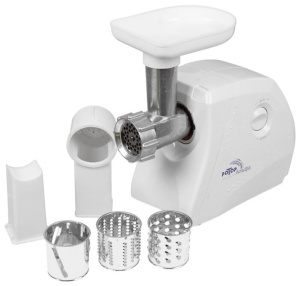 материал лотка: пластик; количество насадок для приготовления колбас: 1; количество насадок-терок: 2; количество насадок для шинковки: 1