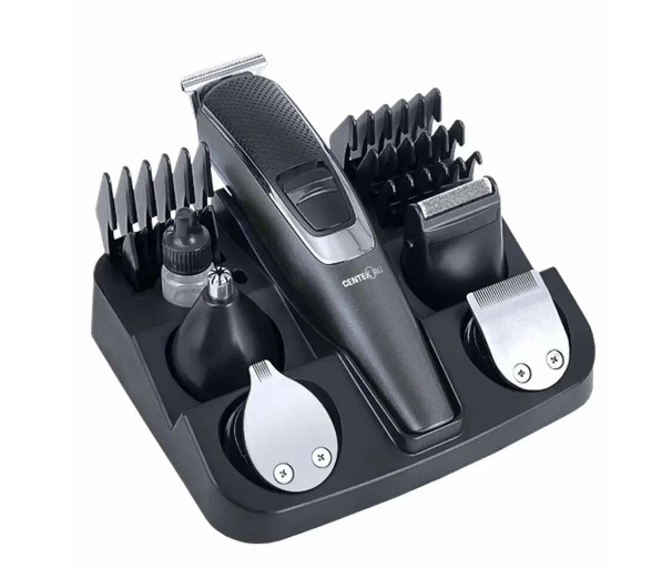 Эта многофункциональная машина сочетает в себе сразу пять устройств в одном: триммер, бритву, стайлер, микротриммер и классический аппарат для стрижки волос.
