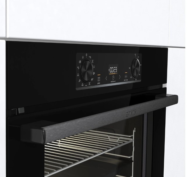 Если вдохновение к кулинарным подвигам настигло вас в последний момент, духовка нагреется до 200 градусов за 5 минут. Дверца модели с двойным стеклом и доводчиком закрывается тихо и плавно. Для установки противней в большой камере прибора имеется 5 уровней, один из которых дополнен телескопическими направляющими. Сводчатая форма модели – HomeMade – указывает на сходство с традиционными дровяными печами. Горячий воздух внутри электрического духового шкафа Gorenje BO6735E05B циркулирует равномерно.