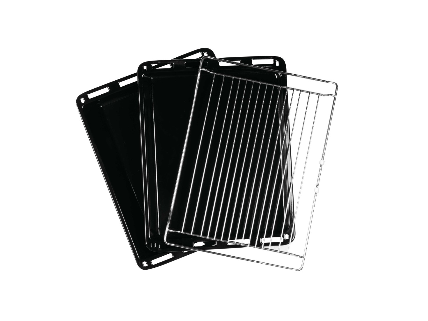 Дверца имеет тройное остекление и систему охлаждения, что уменьшает нагрев внешнего стекла и делает эксплуатацию более безопасной. Есть защита от детей (блокировка управления) и функция автоматического отключения при перегреве. Камера покрыта эмалью легкой очистки; в комплект входят глубокий противень, противень для выпечки и хромированная решетка.