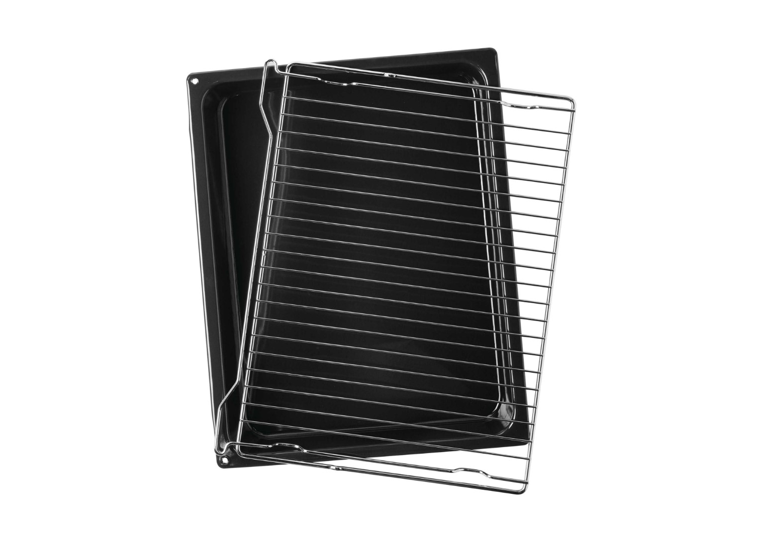 В комплект входят глубокий противень и хромированная решётка — готовый базовый набор для запекания и выпечки.