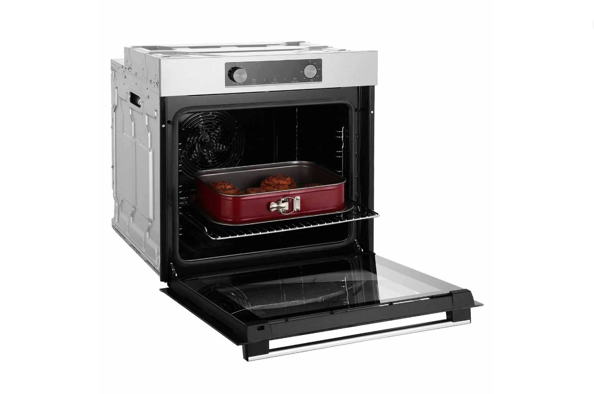 Устройство оснащено удобной панелью управления, представленной электронным программатором и сенсорным меню. Используйте их для быстрого выставления нужных настроек, в том числе выбора одного из 13 режимов работы духовки.