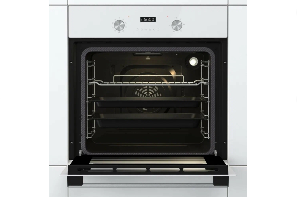 Дверца духовки Gorenje BO6737E03NWG белая оснащена двумя стеклами, что обеспечивает безопасность использования и предотвращает нагревание внешней поверхности.